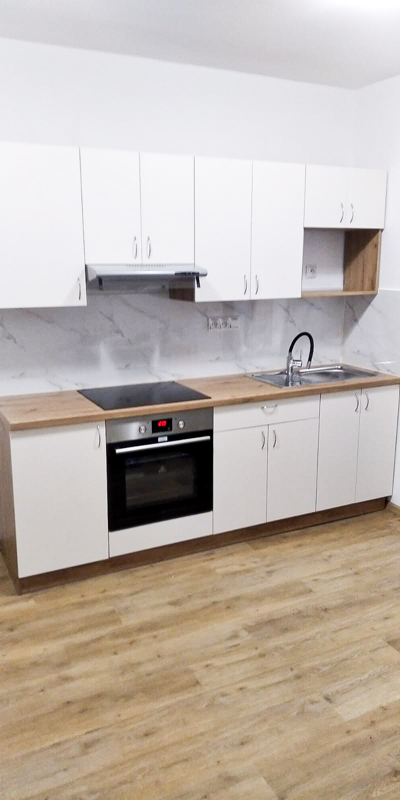 V rámci rekonstrukce dojde k výrazným úpravám dispozice – pokoj již nebude průchozí, což zajistí větší soukromí a praktičnost. Součástí bytu bude také zcela nová, plně vybavená kuchyňská linka, srovnatelná s těmi, které najdete například v bytech č. 21–22.