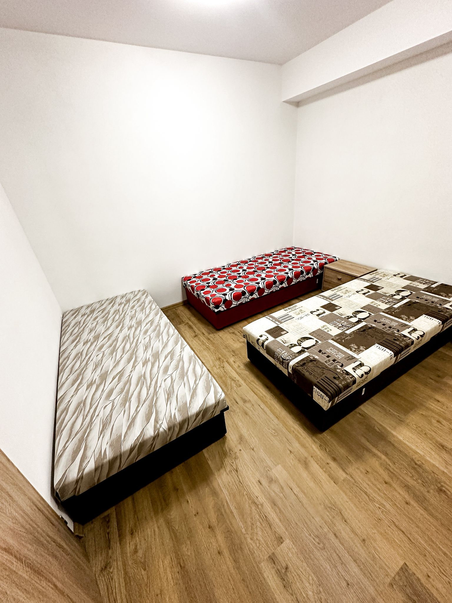 Je to byt typu 2+kk pro max. 3 osoby, který se skládá z dvou pokojů. Pokoj jeden je průchozí. Byt má vlastní vlastní koupelnu s WC a kuchyňský kout kompletně vybavený s lednicí.
